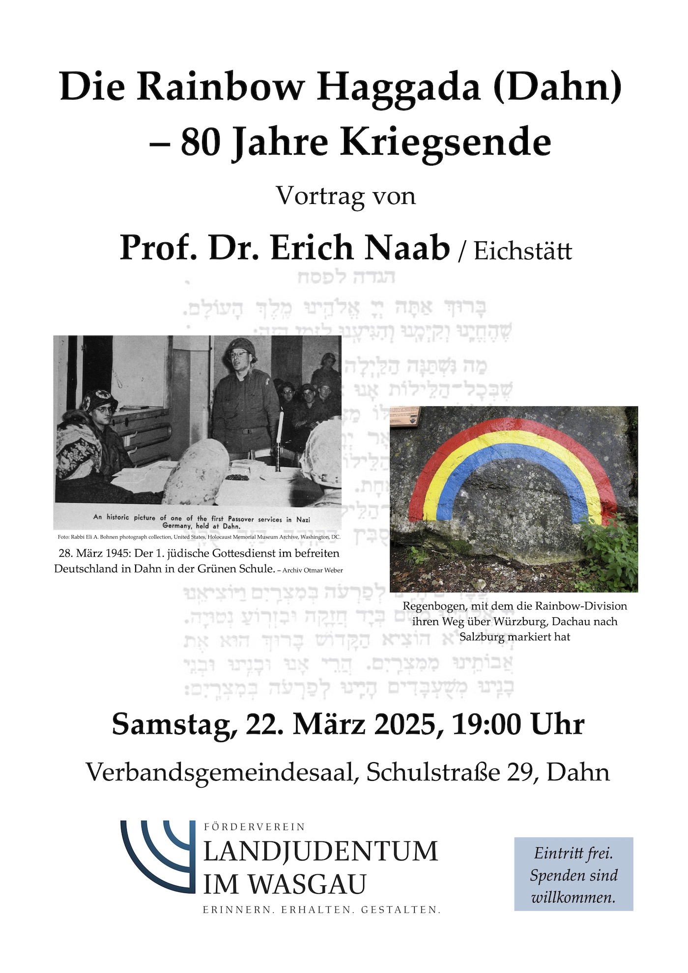 Vortrag Die Rainbow-Haggadah und die Sederfeier der 42. US-Division Vortrag von Prof. Dr. Erich Naab für den Förderverein „Landjudentum im Wasgau“