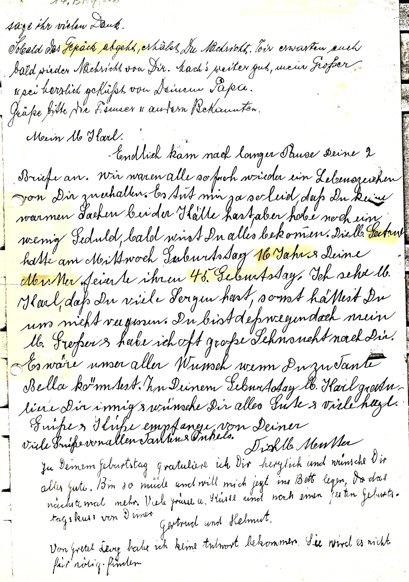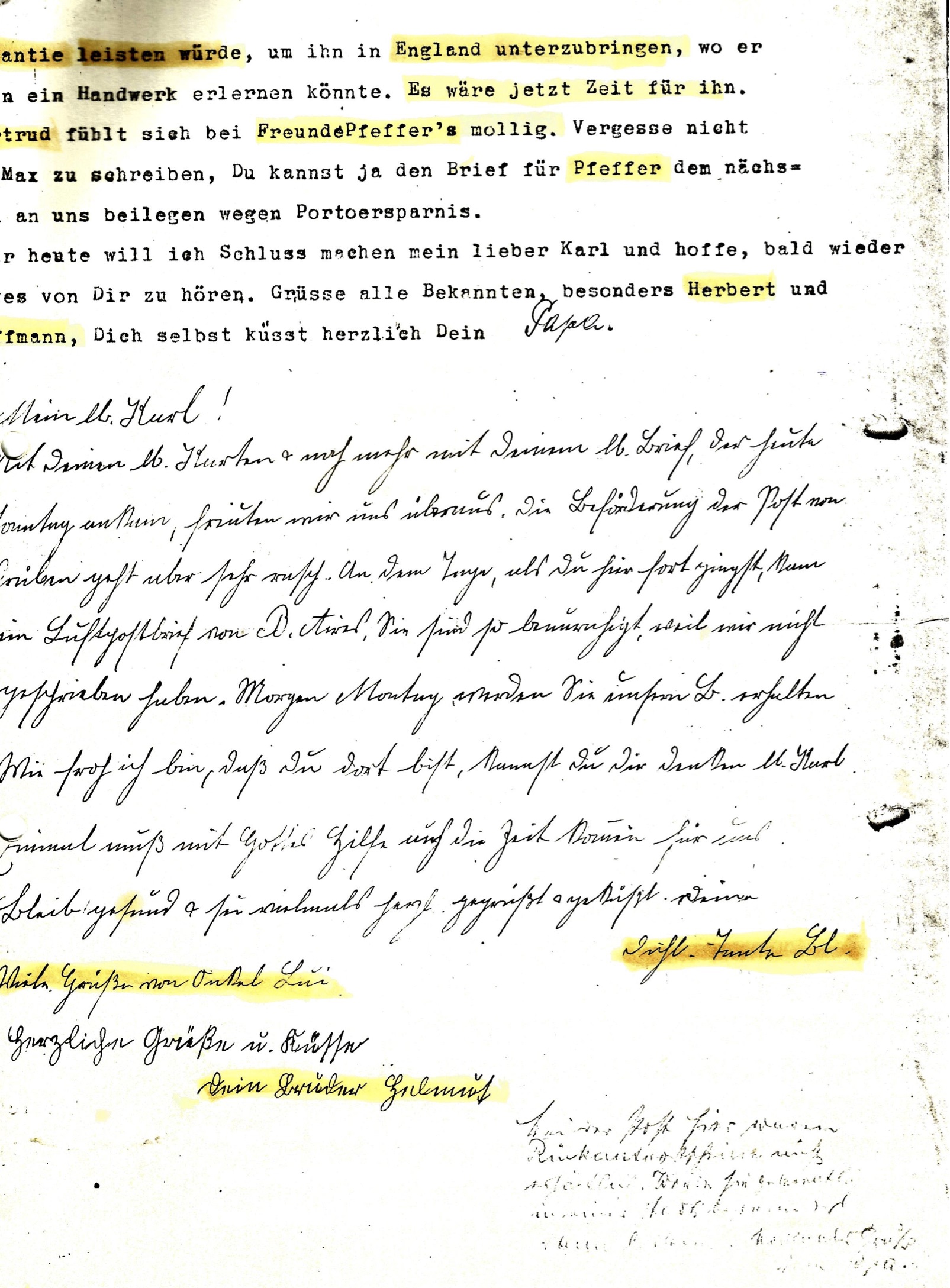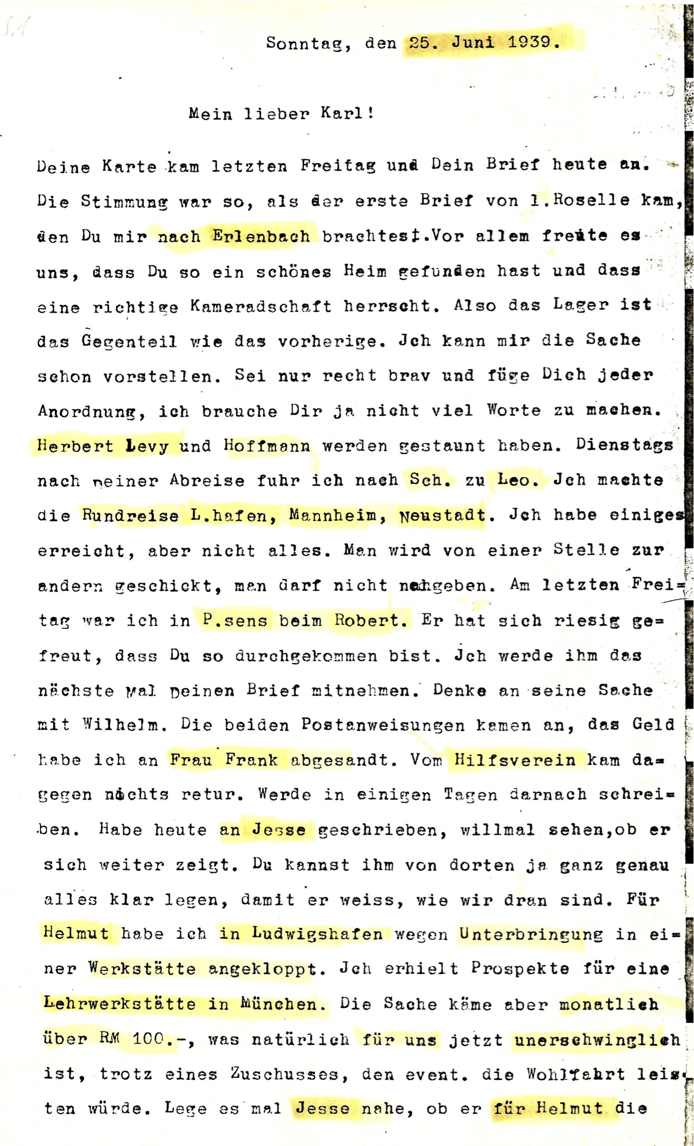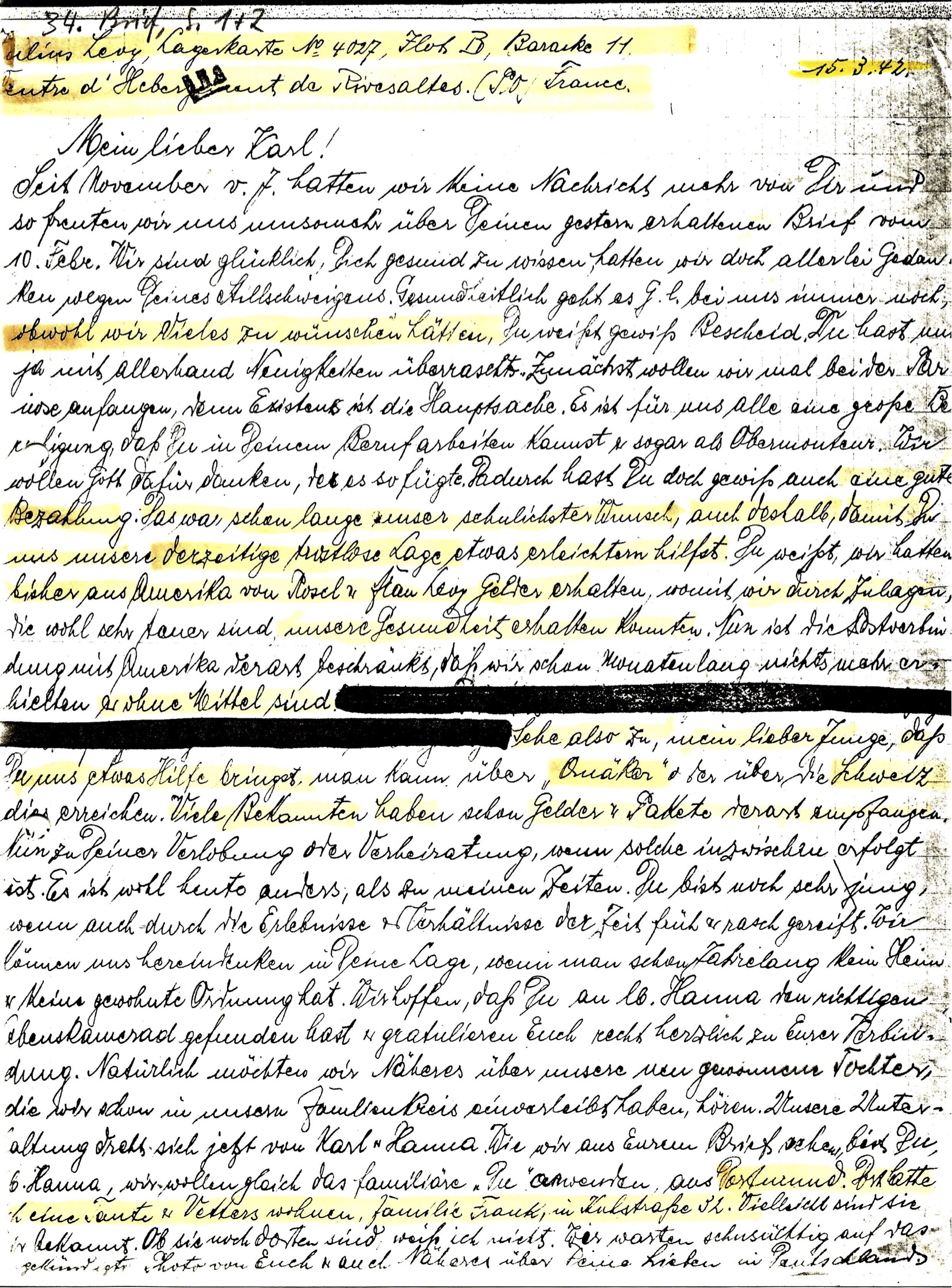Julius Levy & Familie haben von 1939 bis 1942 36 Briefe, Postkarten, Telegramme an Sohn Karl-Heinz Levy geschrieben.