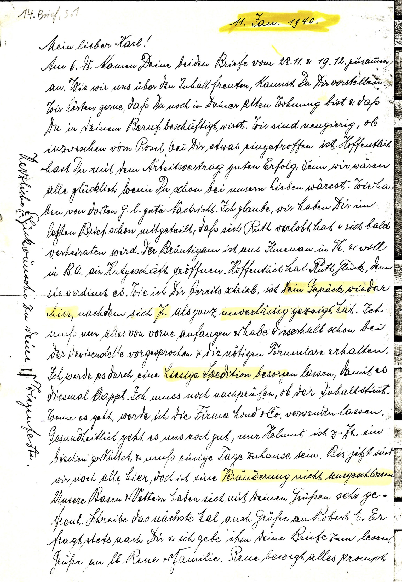 3. Brief, Seite 1/2, Mannheim, 11.01.1940, Julius Levy an Sohn Karl-Heinz in London