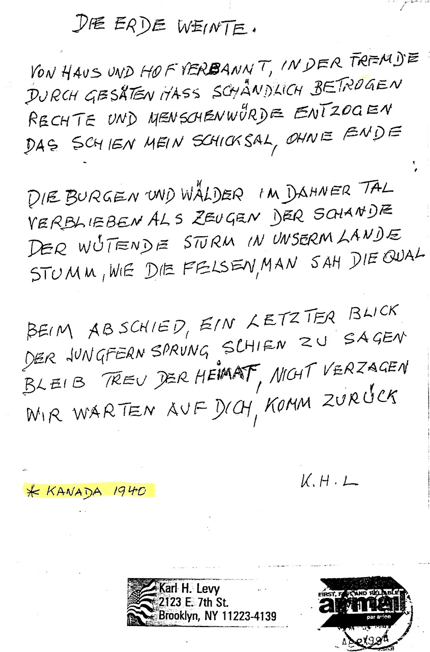 Karl-Heinz Levy, Mundartgedicht, DIE ERDE WEINTE, Kanada 1940