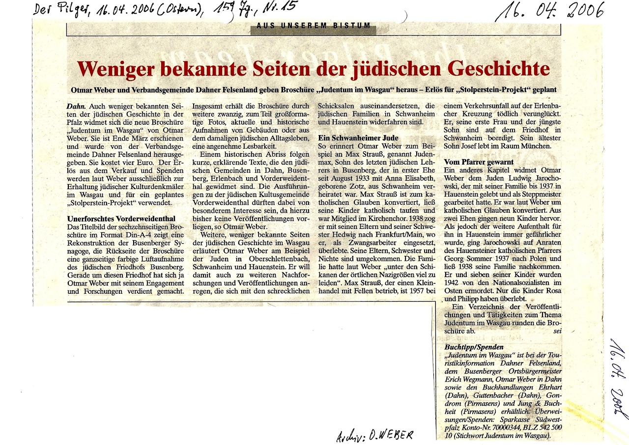 © Arbeitskreis Judentum im Wasgau, Otmar Weber, Schillerstrasse 10b, 66994 Dahn